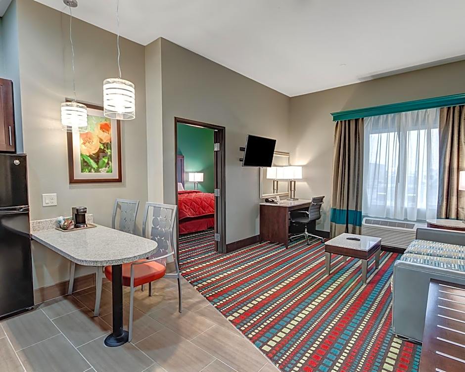 This king suite features a full kitchen with dishwasher and refrigerator. A flat-screen cable TV with satellite channels offers in-room entertainment. The private bathroom comes equipped with a hairdryer.